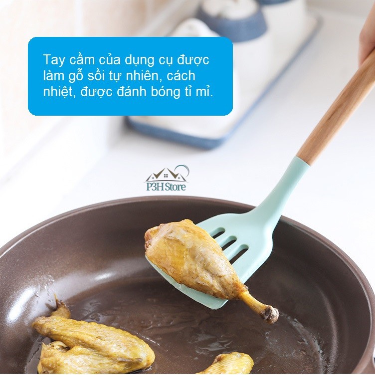 Dụng cụ bếp bằng silicone cán gỗ sồi tự nhiên Fasola SH-121