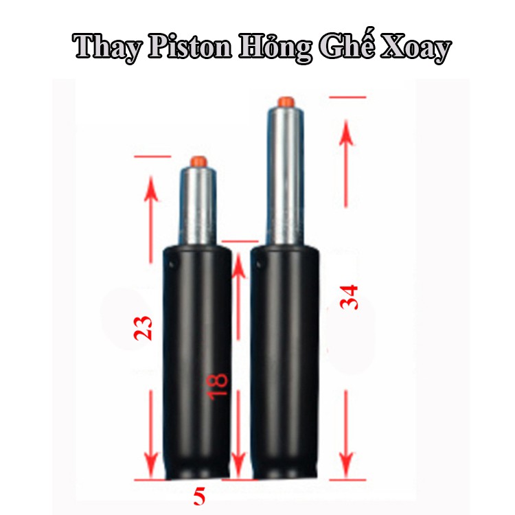 3. Piston/ben hơi ghế: Thép không rỉ: thay đổi chiều cao dễ dàng, từ 43-53cm (tính từ đệm ngồi xuống sàn)