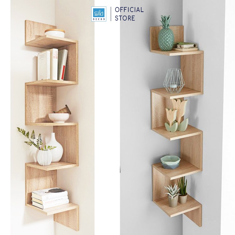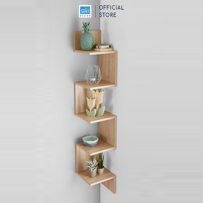 Nhà cửa & Đời sống > Nội thất > Kệ & Giá || Kệ Gỗ Treo Góc Tường 5 Tầng Màu Gỗ Sồi SIB DECOR (Không gồm đồ trang trí trên kệ)Còn hàng