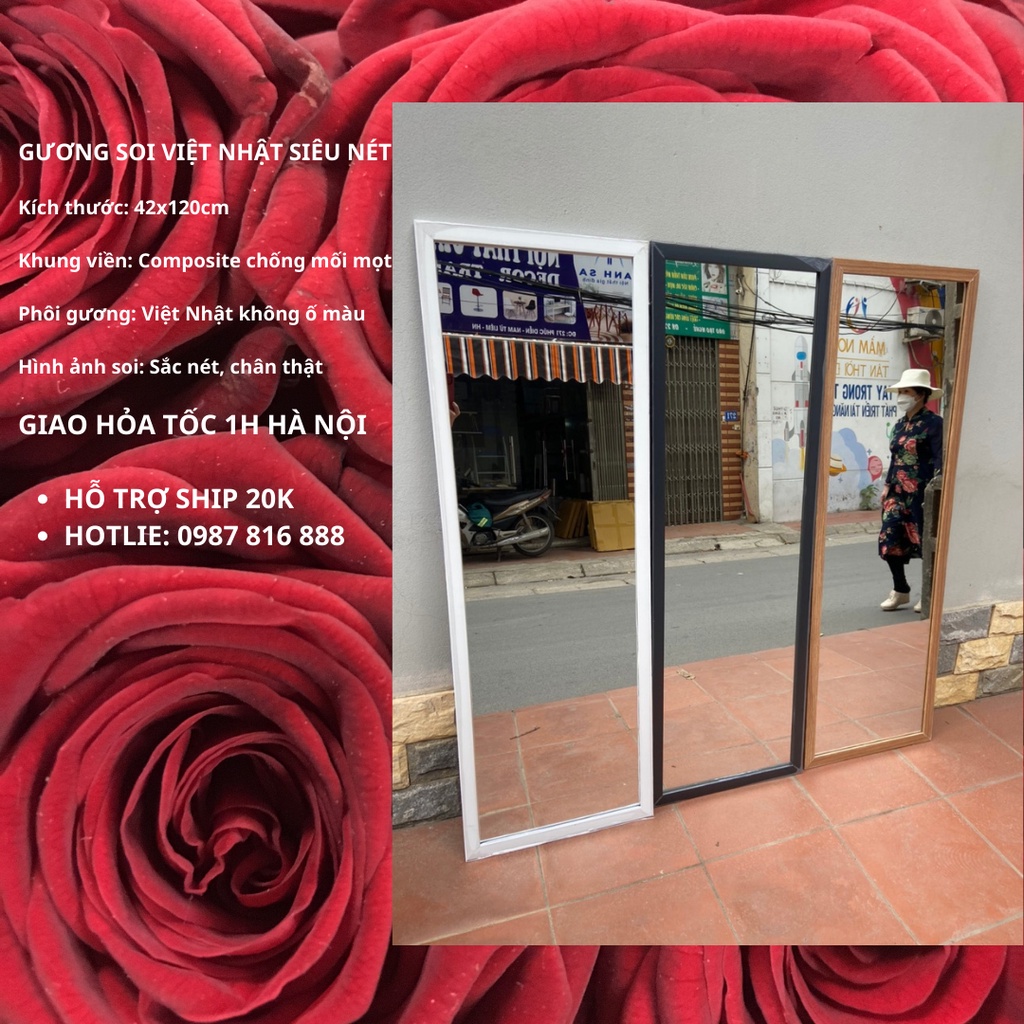 Giới thiệu [Freship kèm quà tặng] Gương soi treo tường toàn thân việt nhật G01 kích thước 42x120cm tặng kèm lược 10K. Ship Hoả Tốc.