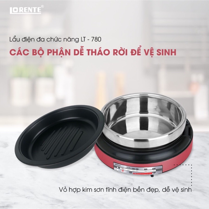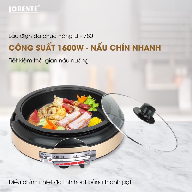 Nồi Lẩu Nướng Điện Đa Năng Lorente LT-780 (4Lít) - Chính Hãng
