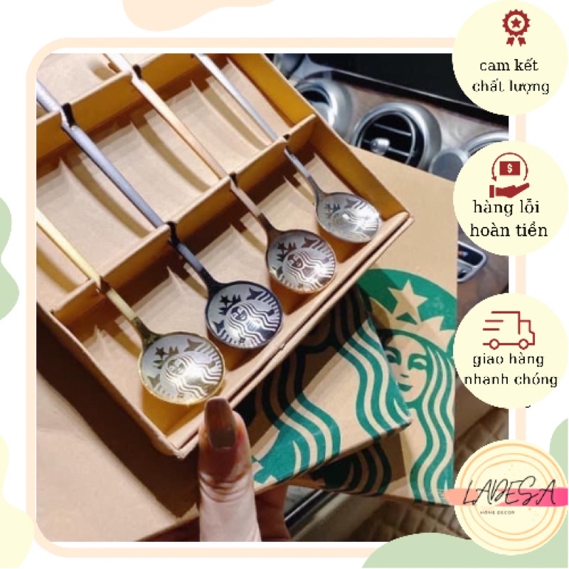 Set 4 thìa muỗng starbucks kèm hộp sang chảnh