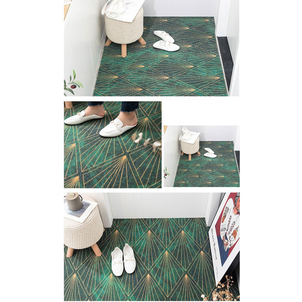 Thảm có kích thước 40x60cm và 60x90cm, họa tiết màu đậm nhạt và trắng đan xen, tạo ấn tượng cho riêng nhà bạn trước khi bước vào nhà.