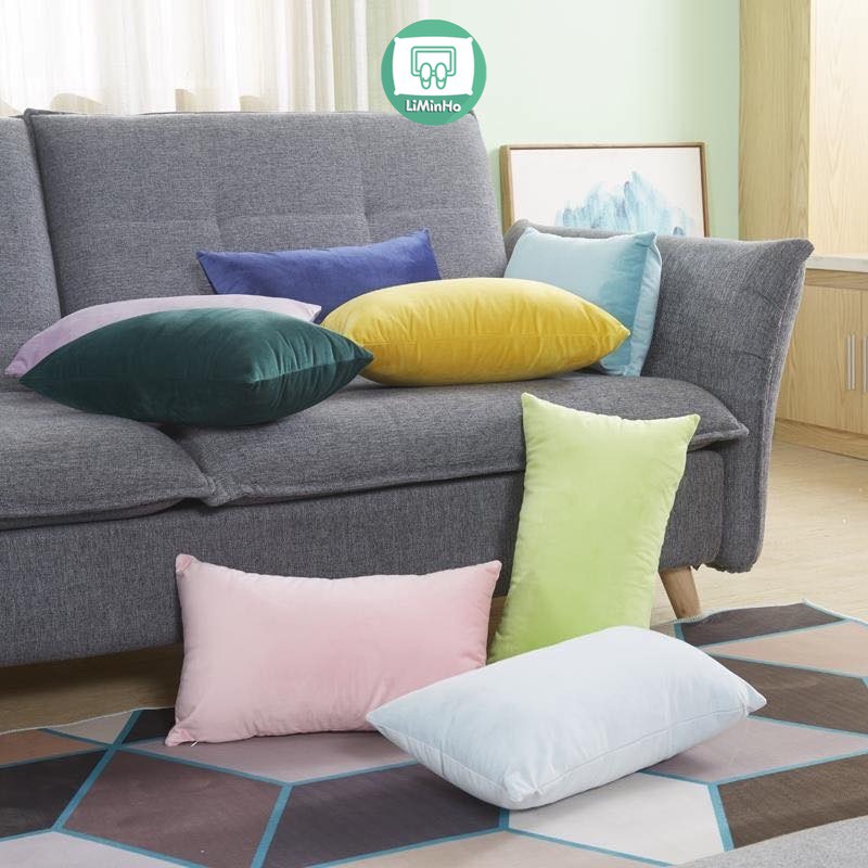 Gối tựa lưng CHỮ NHẬT màu trơn vải nhung lụa (Vỏ kèm ruột)