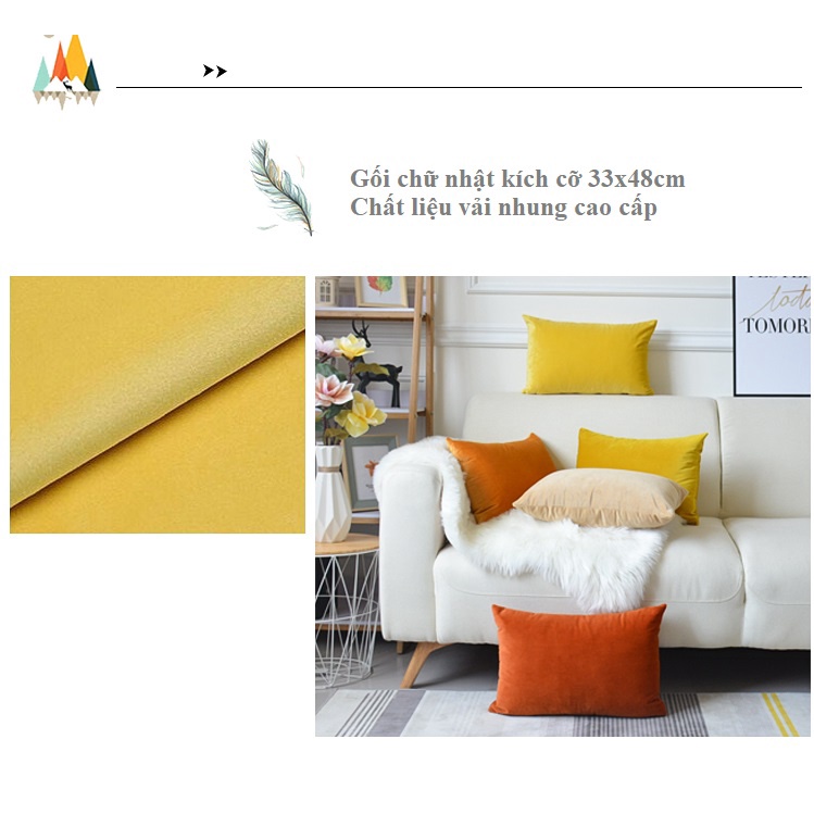 Giới thiệu Gối tựa lưng CHỮ NHẬT màu trơn vải nhung lụa (Vỏ kèm ruột)