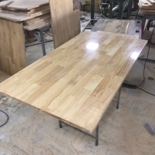 Mặt bàn đã hoàn thiện, bo góc, mài cạnh mịn, sơn lót PU cạnh bảo vệ lõi gỗ và giữ được màu sáng của gỗ. Khách về chỉ lắp đặt với chân bàn tương thích là sử dụng được ngay.