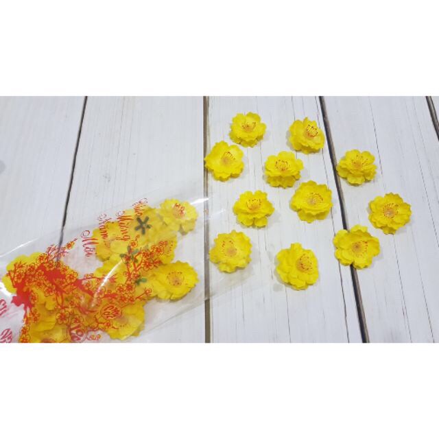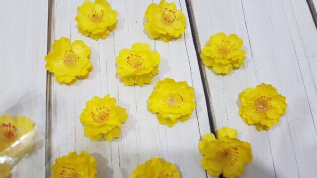 - Set 40 hoa mai, 40 hoa đào có kèm ít kẽm và lá trong mỗi combo. Hoa ba lớp cánh hàng loại đẹp