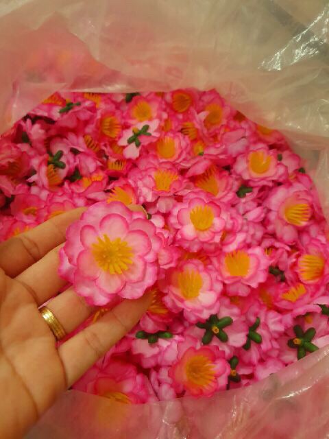 1 gói hoa đào, mai giả trang trí tết có 35 bông tặng kèm 5 lá hoa to đẹp dầy loại 1