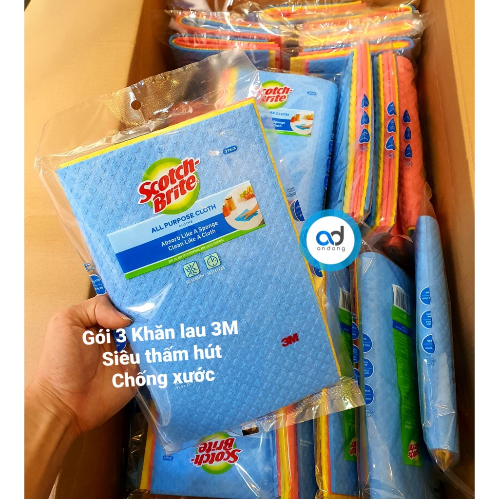 Nhà cửa & Đời sống > Dụng cụ chăm sóc nhà cửa > Khăn vệ sinh || Gói 3 khăn lau đa năng 3M Siêu thấm hút 315x257mmCòn hàng