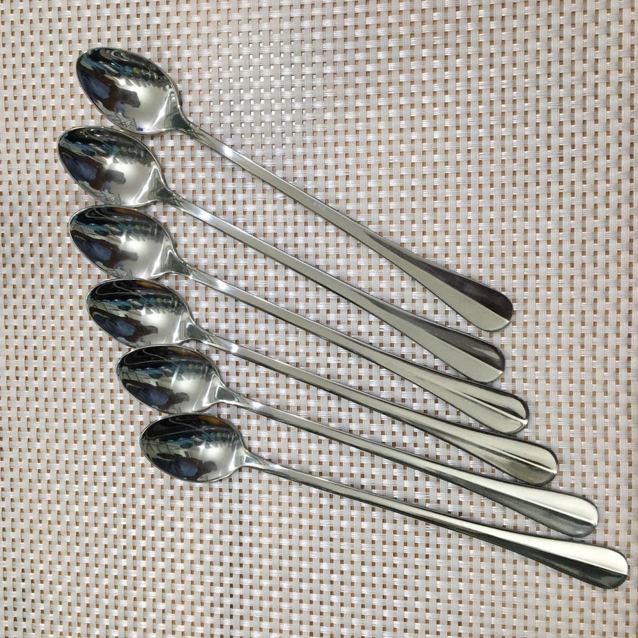 Bộ 6 muỗng cà phê đá dài trơn inox cao cấp dài 19cm và 21cm