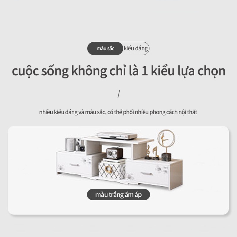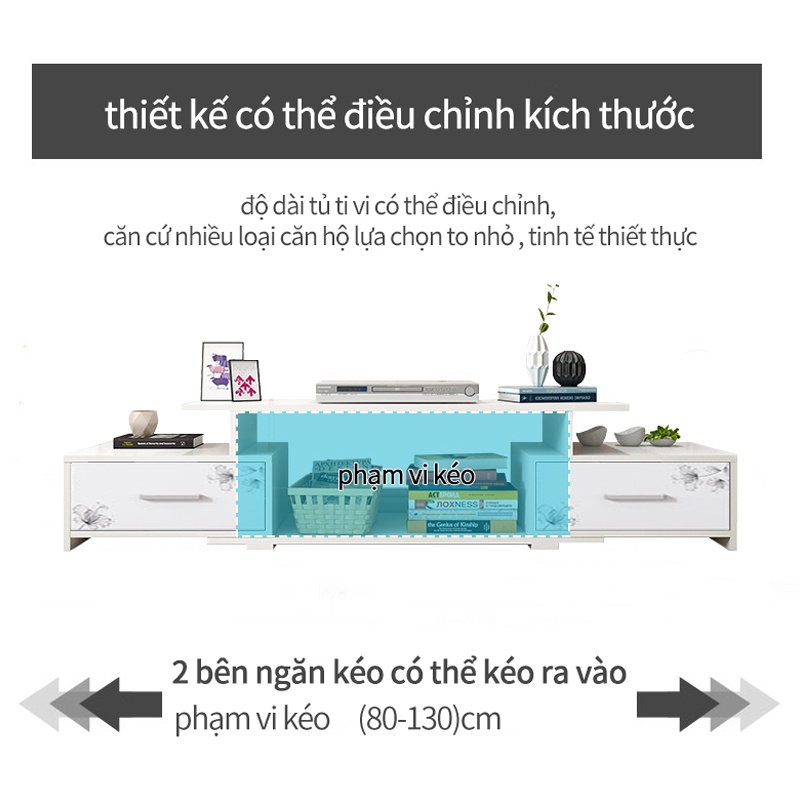 Tủ TV kệ tivi màu trắng có thể co giãn độ dài khoảng từ 80-130cm tủ bày tivi đơn giản thời trang nhỏ gọnTủ kệ TV kiểu dáng đơn giản nhưng vô cùng thanh lịch