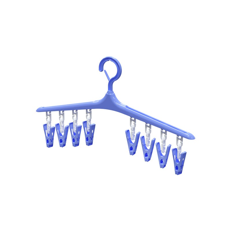 Công dụng: Móc gồm 8 chiếc kẹp nhỏ dùng để phơi khăn tay, tất, găng tay, khăn len, khăn mặt... rất tiết kiệm diện tích, đầu móc có khóa giữ cố định giúp cho móc cố định tại một điểm không bị bay hoặc rớt.