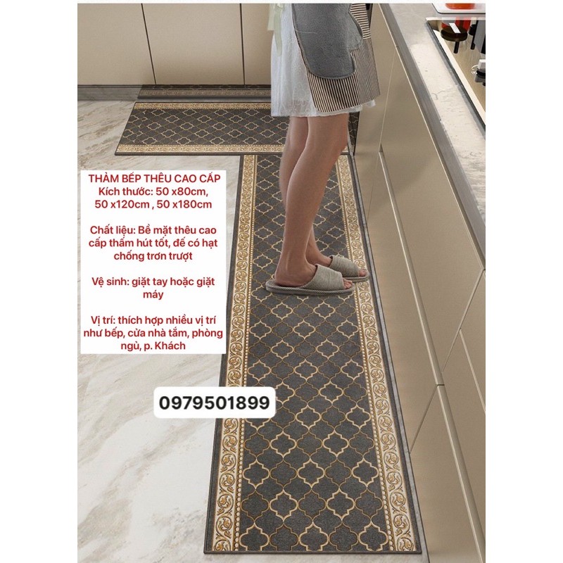 Thảm bếp thêu dệt cao cấp thấm nước, chống trơn trượt size lớn
