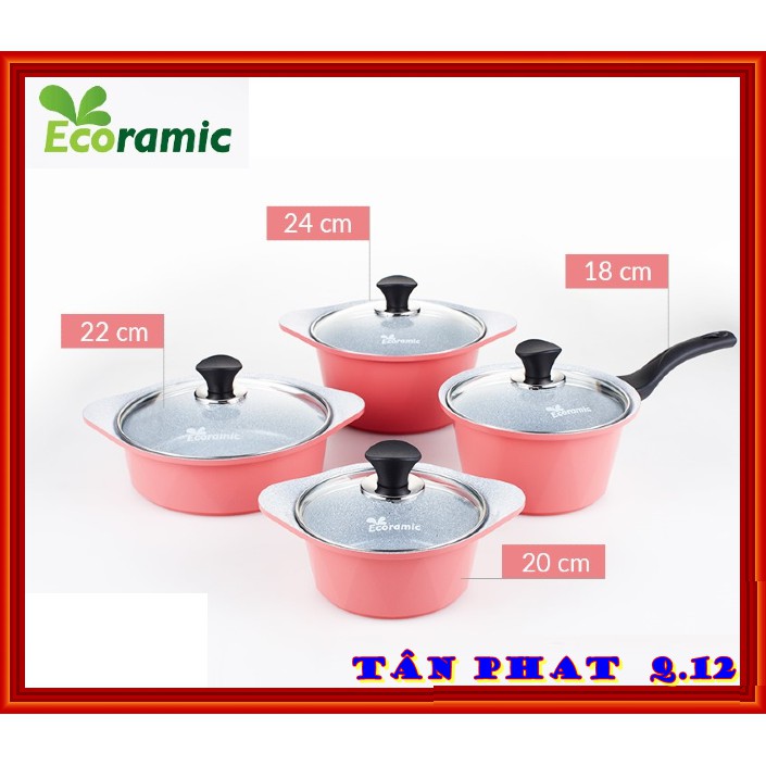 1: BỘ 4 NỒI ECORAMIC: GỒM: 1 QUÁNH 18CM, 1 NỒI CAO 20CM, 1 NỒI CAO 24CM, 1 NỒI THẤP 22CM