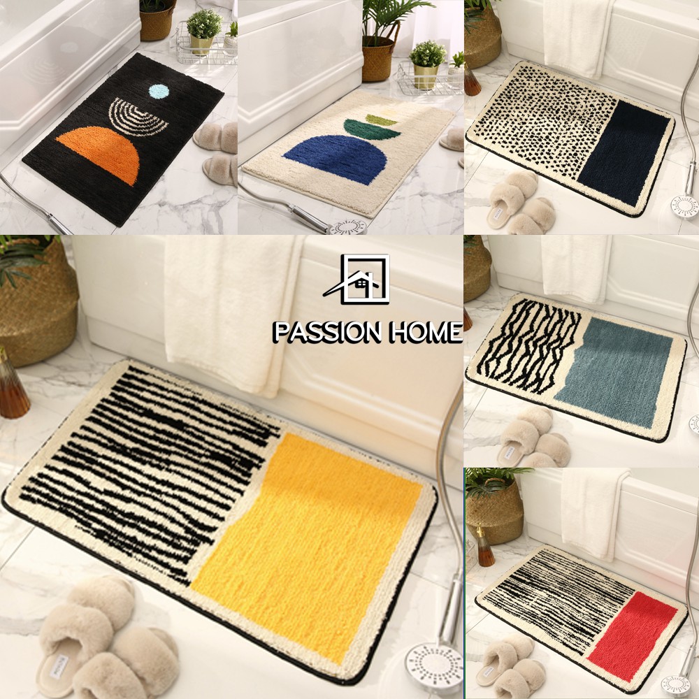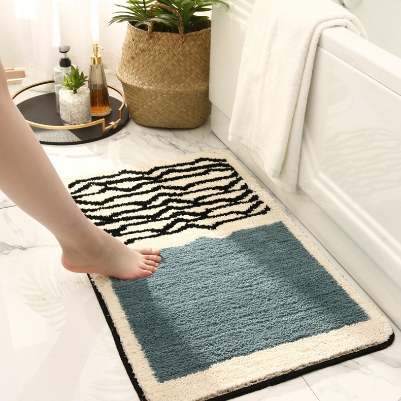 Thảm Lau Chân Sợi Len Thấm Hút Họa Tiết Hình Học Vệt Sọc Cá Tính