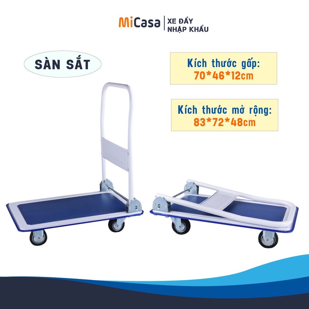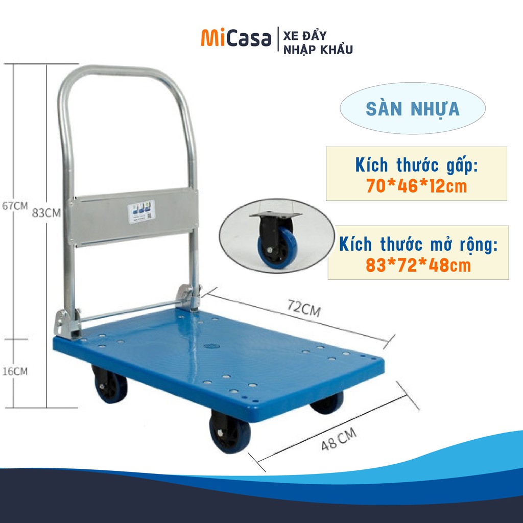 🔎 Xe đẩy tải trọng 150kg: Kích thước mặt sàn: 73x48 (cm)