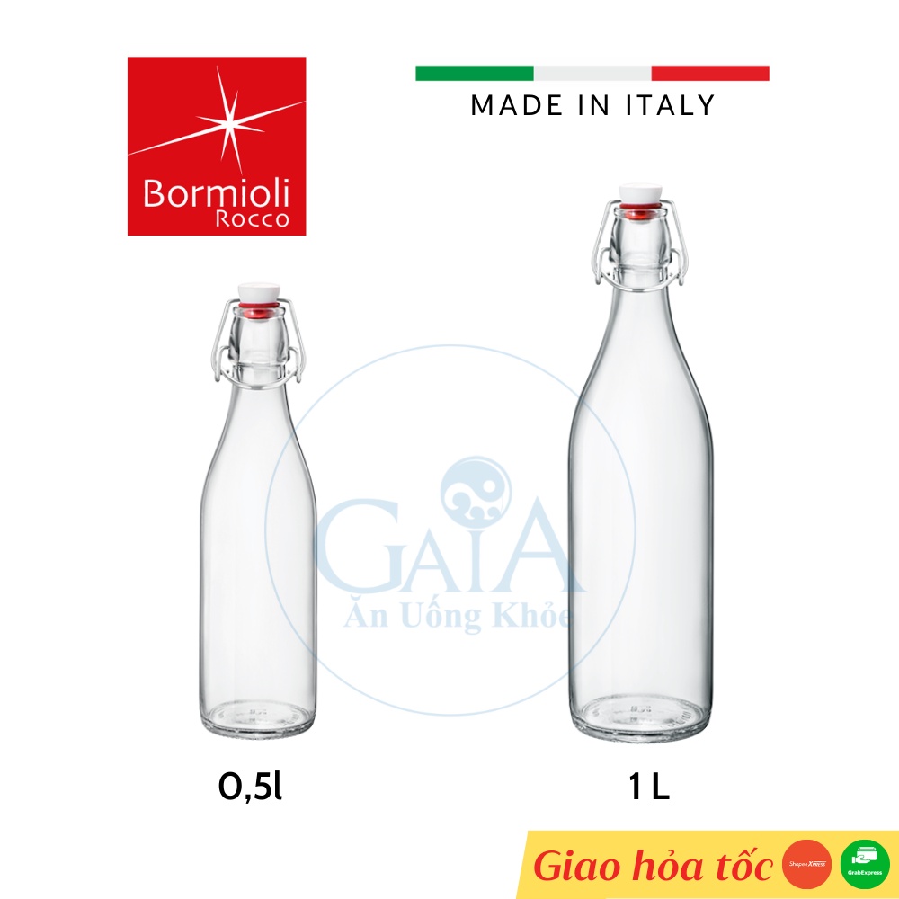 Nhà cửa & Đời sống > Bộ đồ bàn ăn > Bình nước & phụ kiện || [Ý] Chai Thủy Tinh Nắp Cài Kín Hơi Đáy Tròn Giara Bormioli RoccoCòn hàng