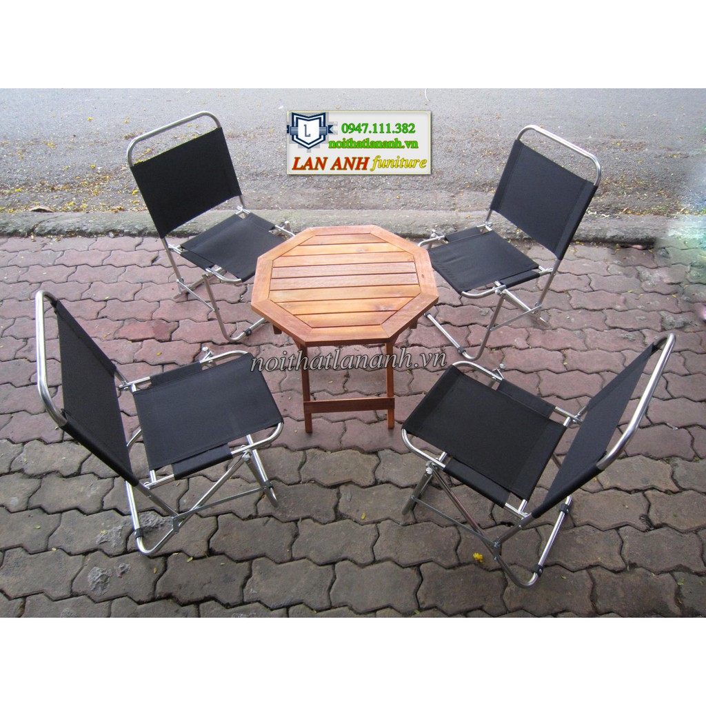 Đây là mẫu bàn ngoài trời kết hợp với ghế xếp inox, ghế xếp khung thép được sử dụng phổ biến làm bàn ghế cafe, bàn ghế trà chanh, bàn ghế ăn, bàn ghế trà sữa với ưu điểm giá rẻ nhỏ gọn có thể xếp lại được nên tiết kiệm được rất nhiều không gian. Với ưu điểm như thế nên bàn có thể sử dụng tại không gian cố định trong nhà, không gian ngoài trời hay các phương thức bán hàng di động....