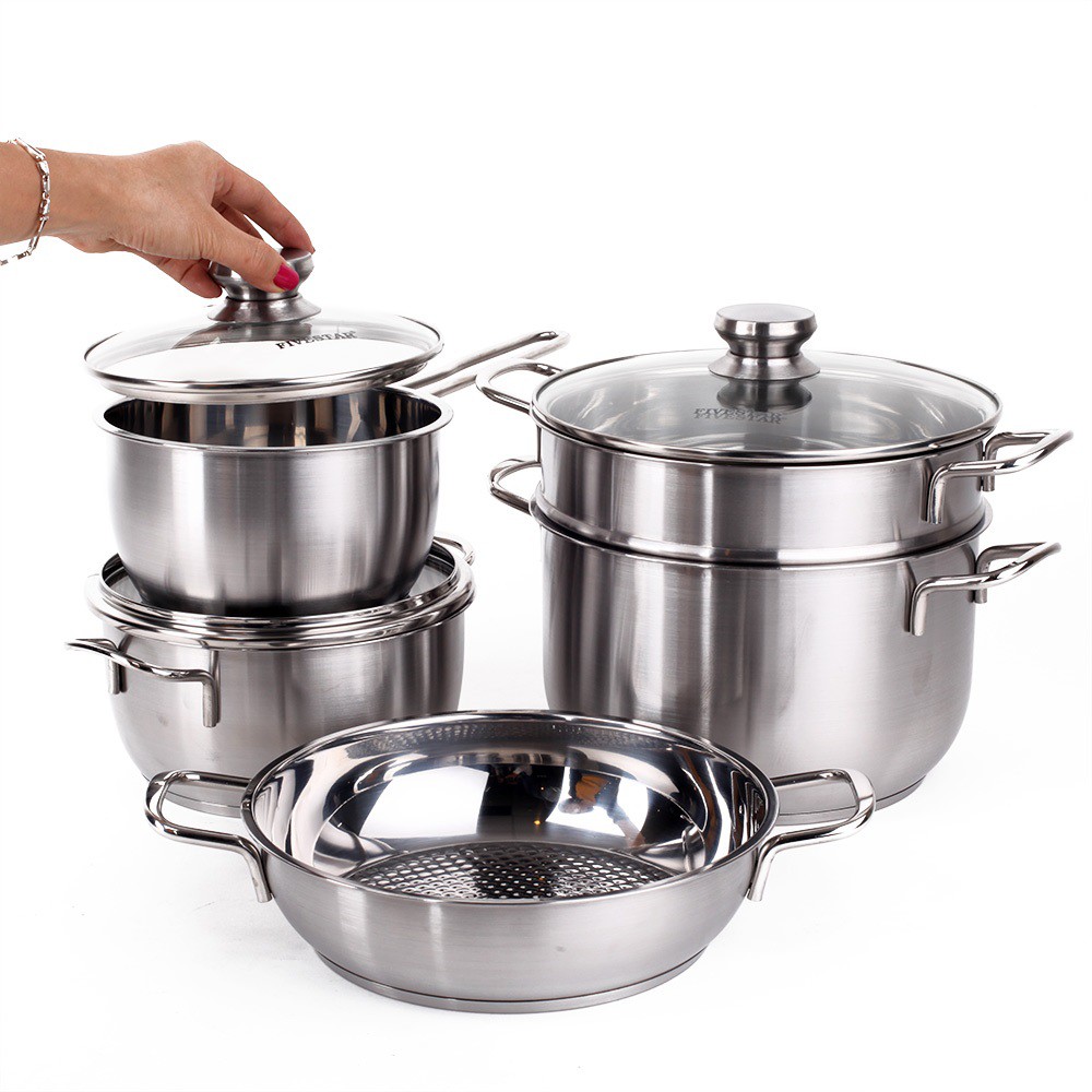 Nhà cửa & Đời sống > Dụng cụ nhà bếp > Nồi || Bộ 5 nồi Inox 3 đáy Fivestar nắp kínhCòn hàng