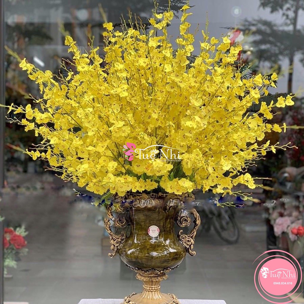 Hoa Giả Hoa Lụa - Cành Lan Vũ Nữ 8 Nhánh , Cành Dài 105cm, Loại Cao Cấp.