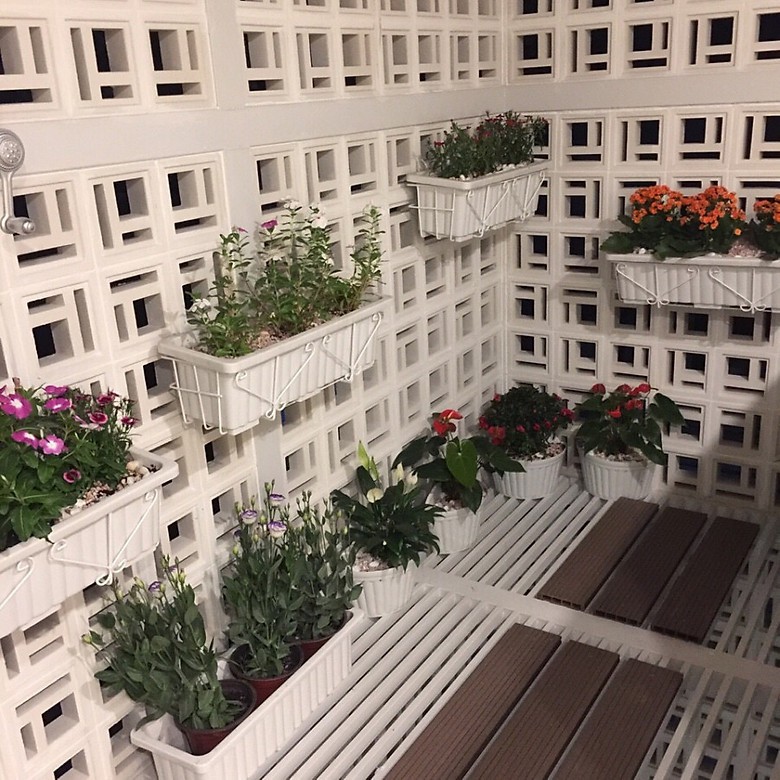 Màu xanh mướt và rực rỡ của rau, hoa kết hợp với sắc trắng của khung chậu mang lại sự tươi mát, sang trọng cho không gian ban công nhà bạn