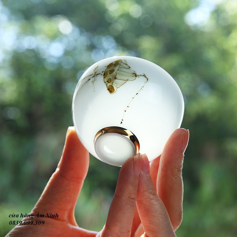 Chất liệu: Sứ thanh hoa – sứ Cảnh Đức (sứ mỏng cao cấp, Độ tinh khiết rất cao anh sáng có thể lọt qua)