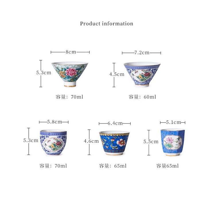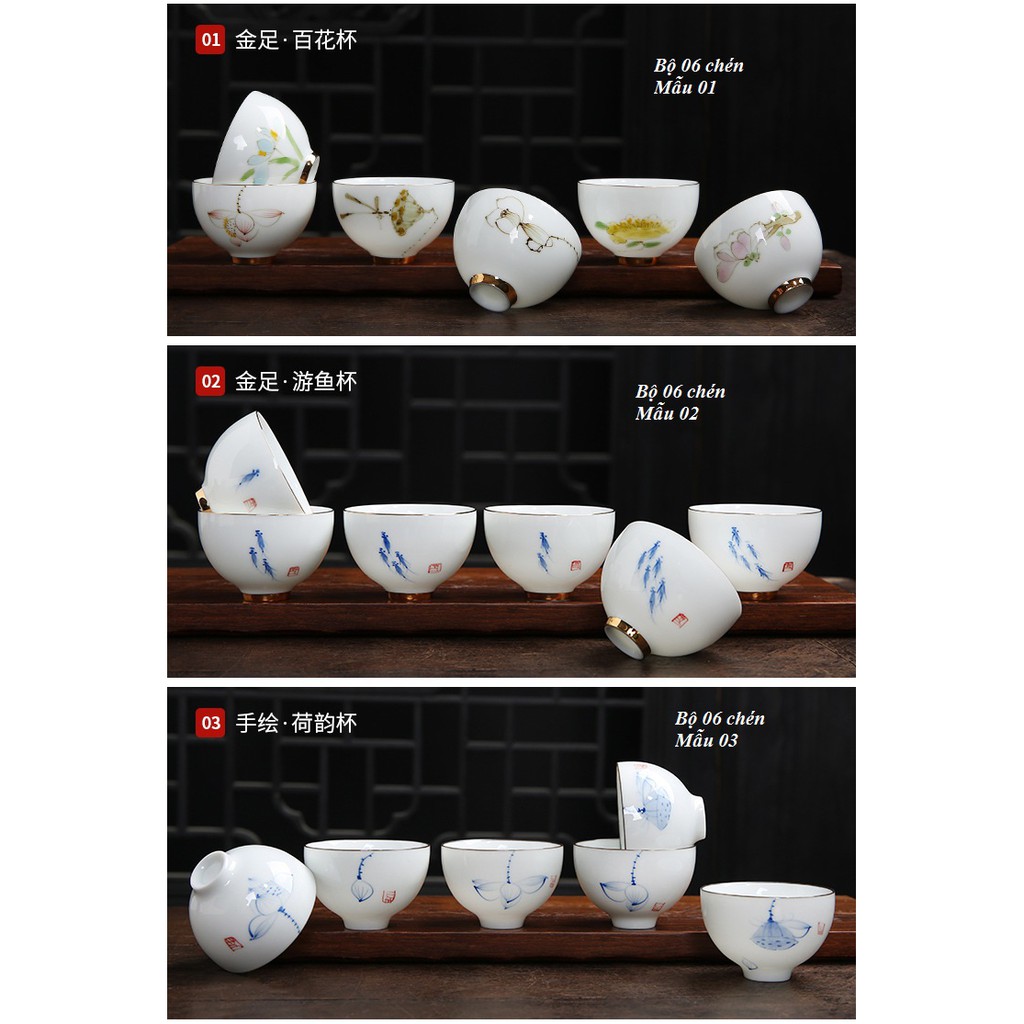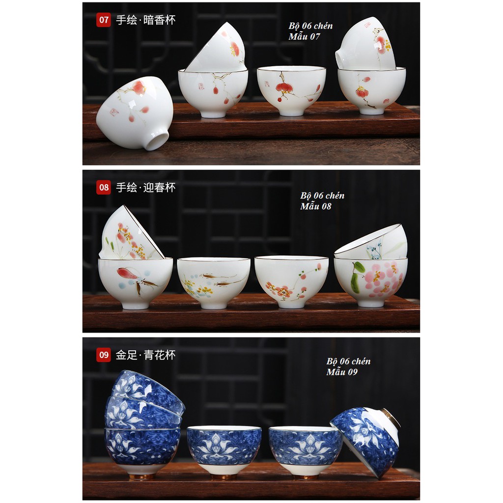 Bộ chén sứ Cảnh Đức vẽ tay thủ công (Bộ 06 chiếc kèm hộp quà)Mô tả sản phẩm: