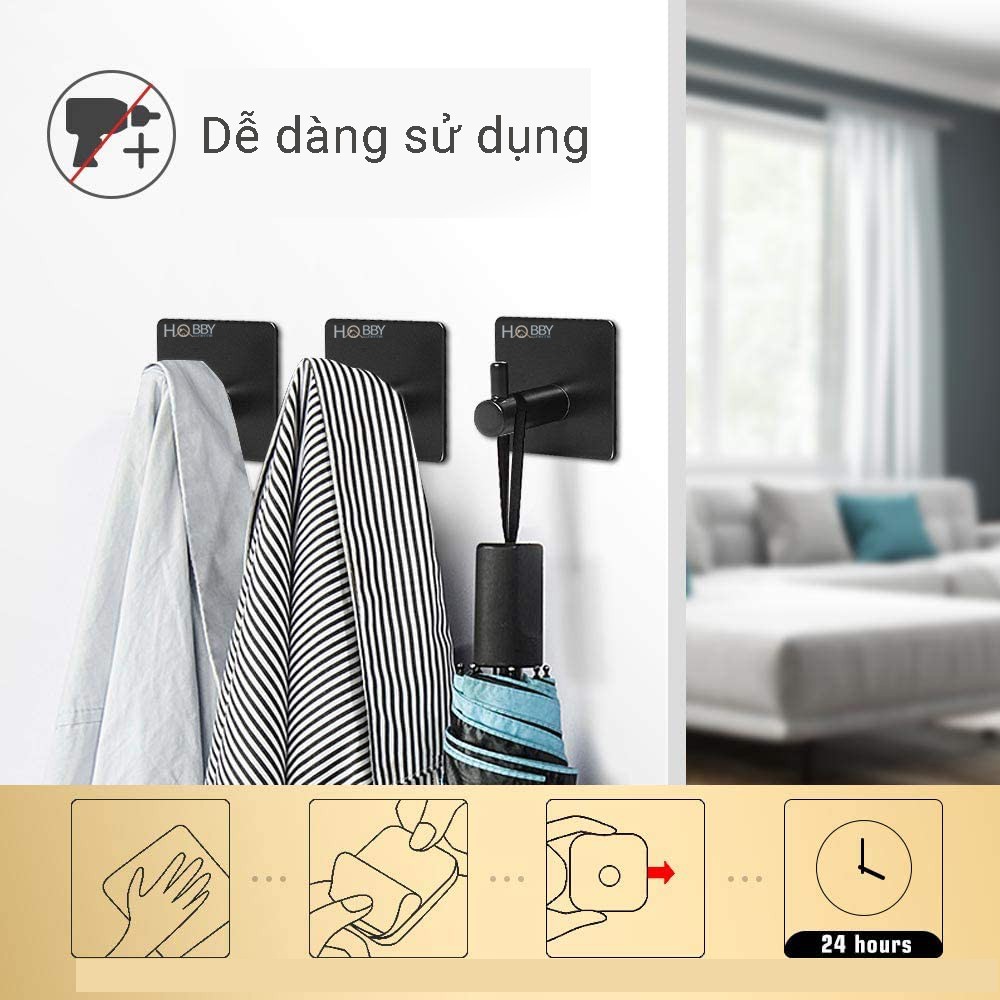 Giới thiệu [Mã LIFEHLSALE2 giảm 10% đơn 0Đ] Combo 4 móc Inox 304 HOBBY Home Decor 160D-4 màu đen dán tường gạch men, kính