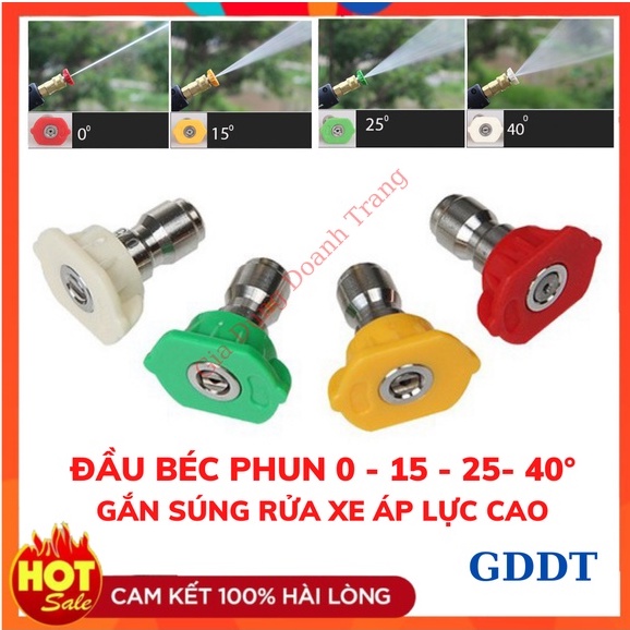 Béc rửa xe, Đầu phun rửa xe góc phun từ 0 - 15 - 25 - 40 độ gắn súng rửa xe áp lực cao