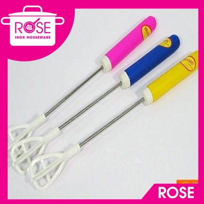 # 1 Loại thân INOX : Cán nhựa cứng, thân đánh INOX, lưỡi đánh bằng nhựa PP cứng chắc. Ruột đánh là lò xo inox không gỉ loại đen cứng cáp - dài 28cm. (Kèm hình )