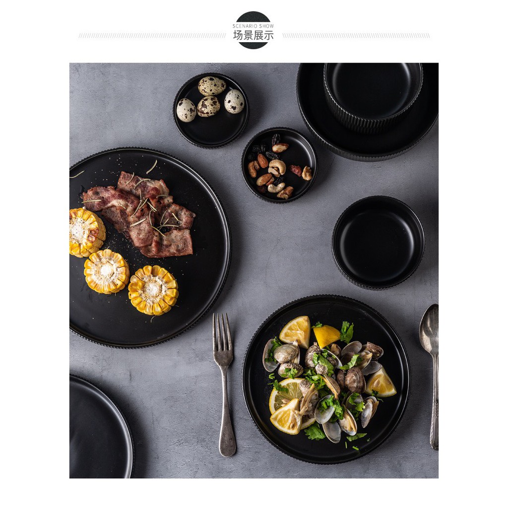 Nhà cửa & Đời sống > Bộ đồ bàn ăn > Dĩa || (LẺ MÓN) Bát đĩa sứ men mờ đen sọc Cruise sang trọng - Chén dĩa sứ cao cấp p/c Bắc ÂuCòn hàng