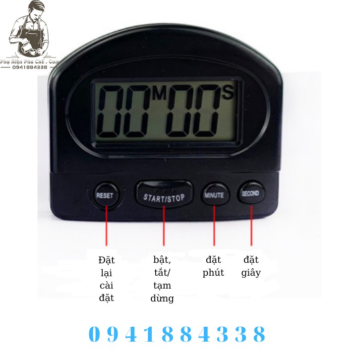 ĐỒNG HỒ BẤM GIỜ ĐIỆN TỬ MINIĐồng hồ bấm giờ đếm ngược mini với màn hình LCD hiển thị sắc nét, màn hình có kích thước lớn hơn sử dụng pin thông dụng, thời gian bấm giờ lên tới 99 phút 59 giây, sử dụng hẹn giờ pha chế, nấu ăn, học tập, tập thể dục, phòng thí nghiệm, thẩm mỹ viện, hair salon …