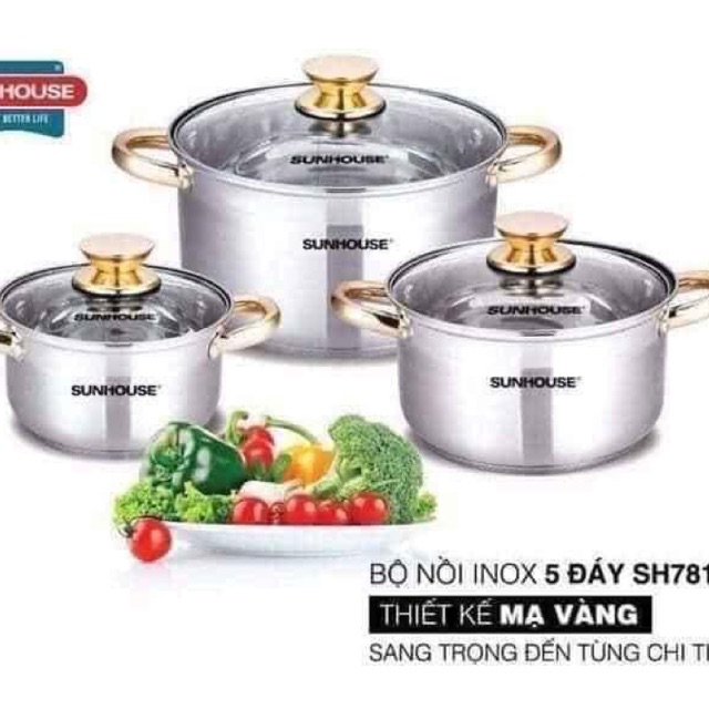 💥 Bộ nồi Sunhouse 5 đáy 781 ngày mai về hàng Mn nhé.✅ Sunhouse 781 thách thức tất cả các loại bếp luôn ạ.
