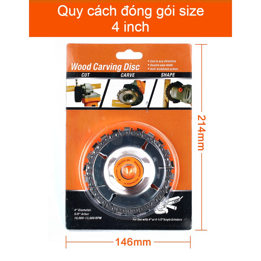 Đĩa cưa xích, lưỡi cưa xích cắt gỗ, phay phá gỗ đa năng gắn máy mài 4 inch, 5 inch