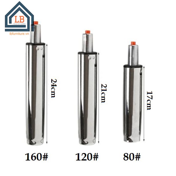 + D160: Đường kính 5cm, tổng chiều cao ngắn nhất (khi nén hơi) 31 cm, chiều cao dài nhất (khi xả hơi) 45 cm