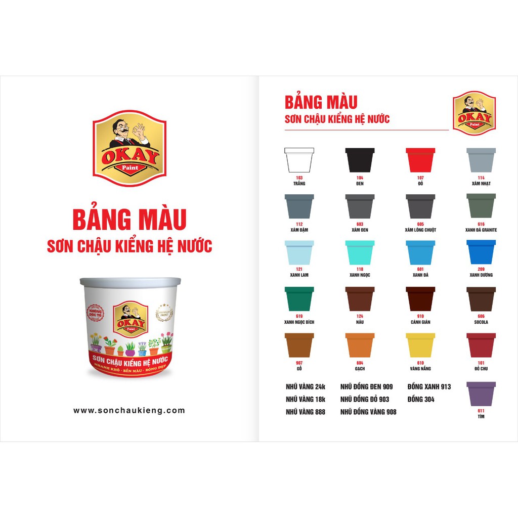 ( nhiều màu ) Sơn chậu kiểng hệ nước ngoài trời Okay Paint lon 1kg