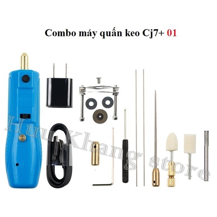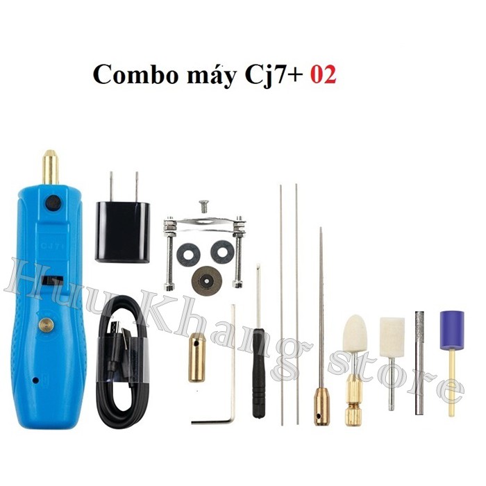 - Combo 01: Máy cj7+ và phụ kiện: 1 đầu nối , 1 đầu len quấn keo, 1 đầu len đánh bóng, 1 đầu mài