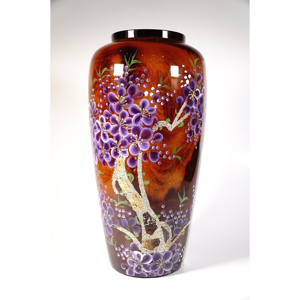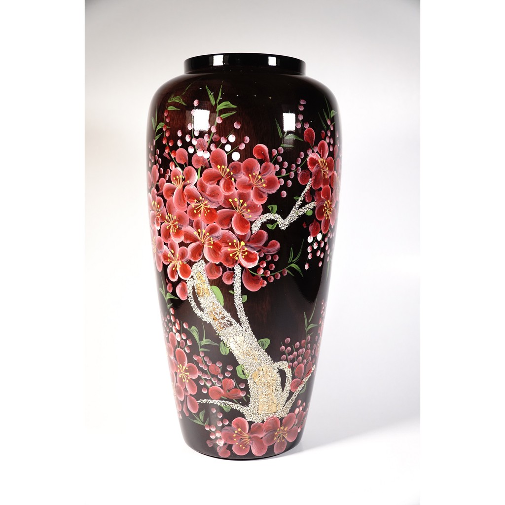 Bình hoa gỗ lớn vẽ cành mai đào lá lan mỹ nghệ cao cấp - Cao 30cm