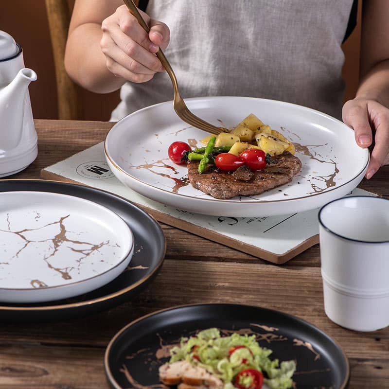 Nhà cửa & Đời sống > Bộ đồ bàn ăn > Dĩa || (BÁN LẺ) Bộ đĩa vân đá ☘𝑭𝑹𝑬𝑬 𝑺𝑯𝑰𝑷☘ Đĩa vân đá phong cách Bắc ÂuCòn hàng