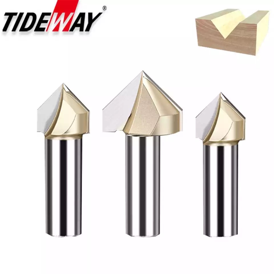 Nhà cửa & Đời sống > Dụng cụ & Thiết bị tiện ích > Dụng cụ > Cưa, máy cắt & máy mài || Mũi phay gỗ Vát 45 độ không bi chữ V Tideway cao cấpCòn hàng