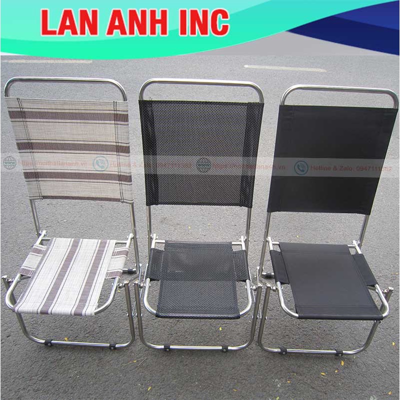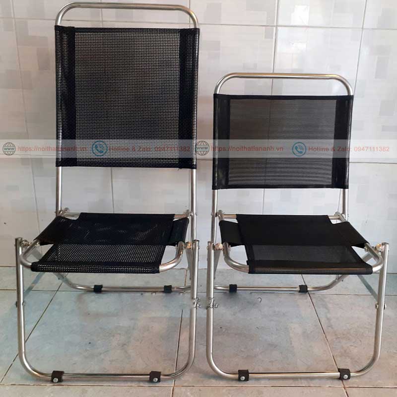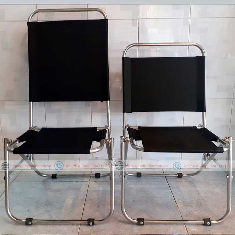 - Kích thước: Ghế xếp có 2 loại lưng thấp và lưng cao. Lưng thấp ngồi đến ngang lưng dưới, lưng cao ngồi đến ngang cổ.