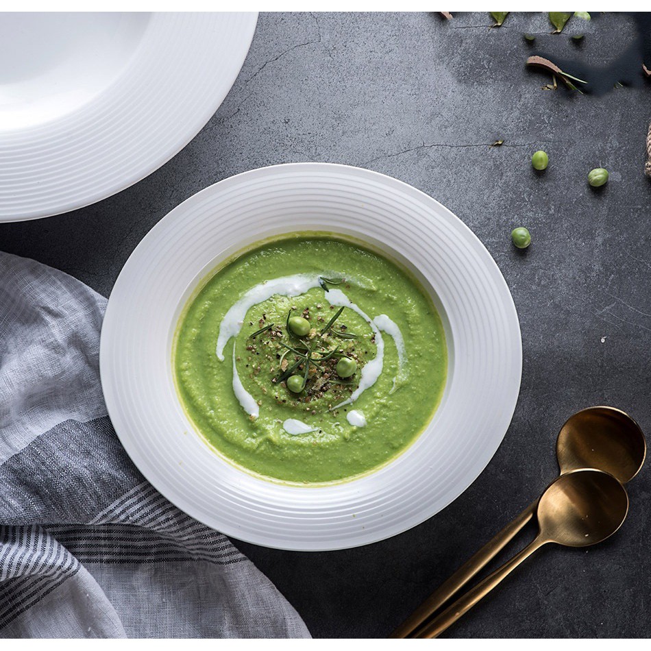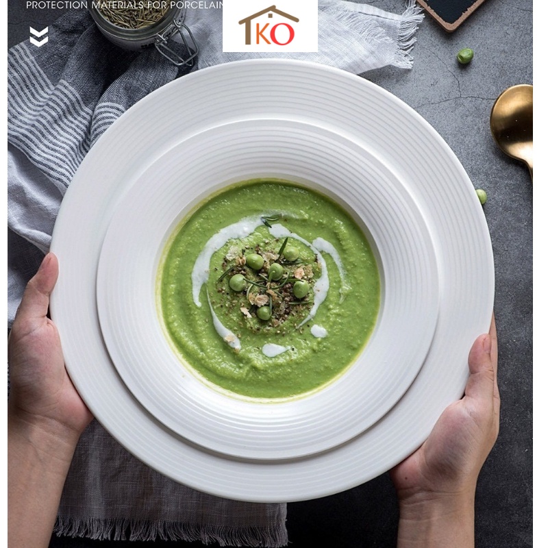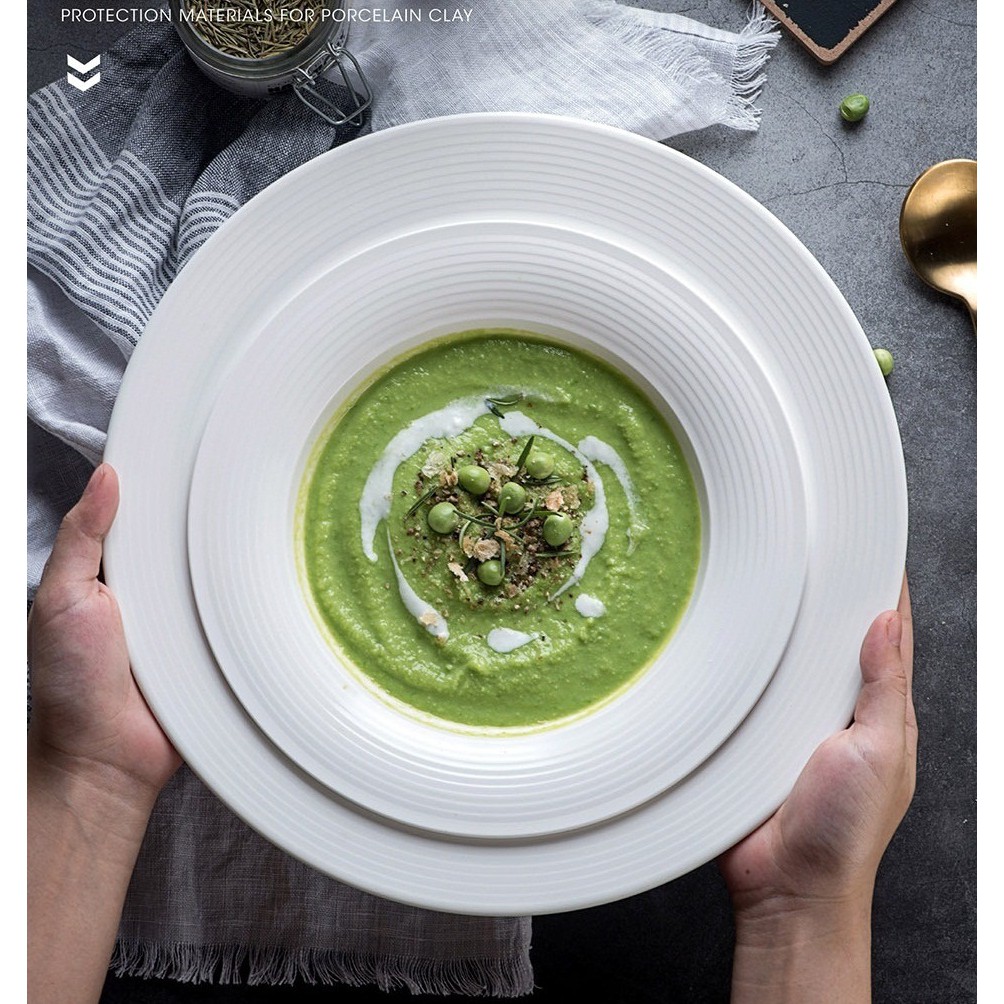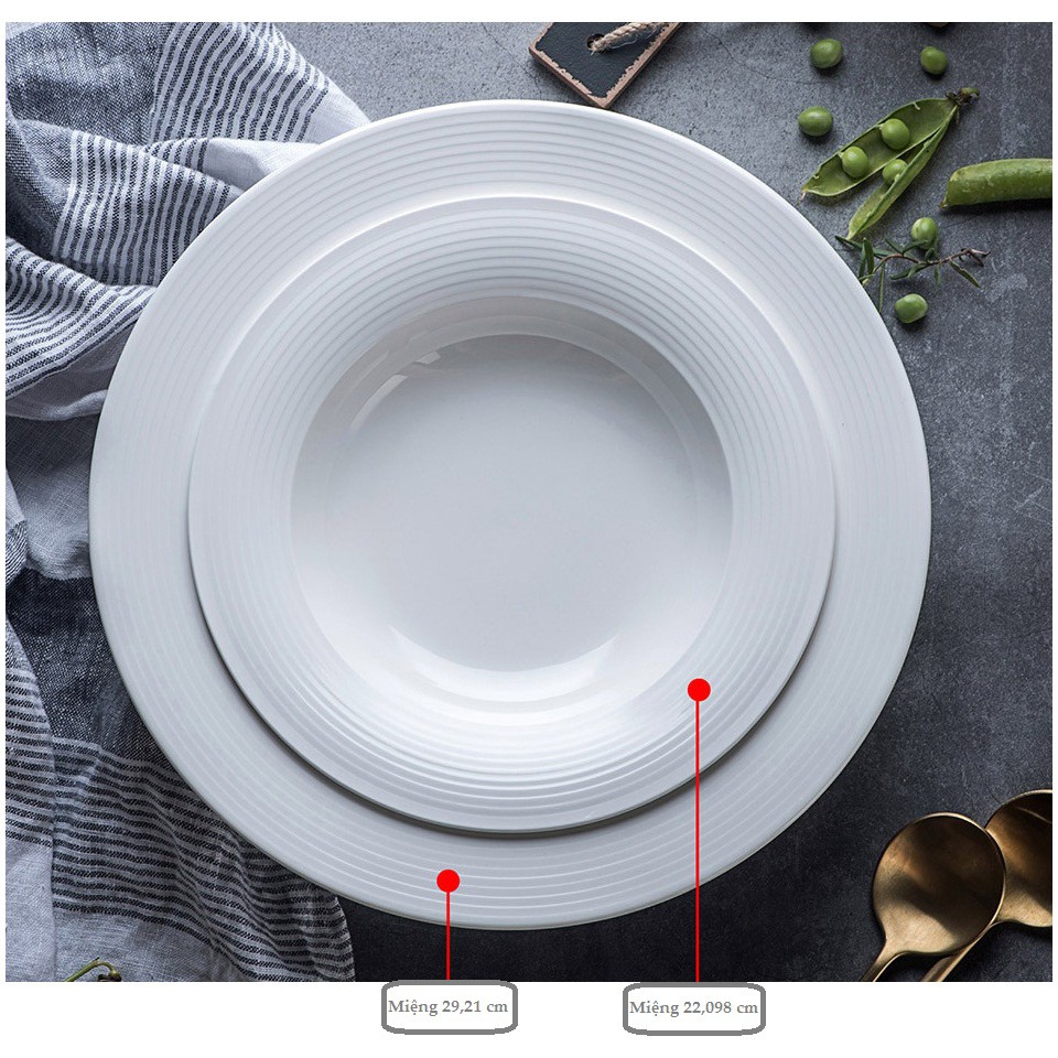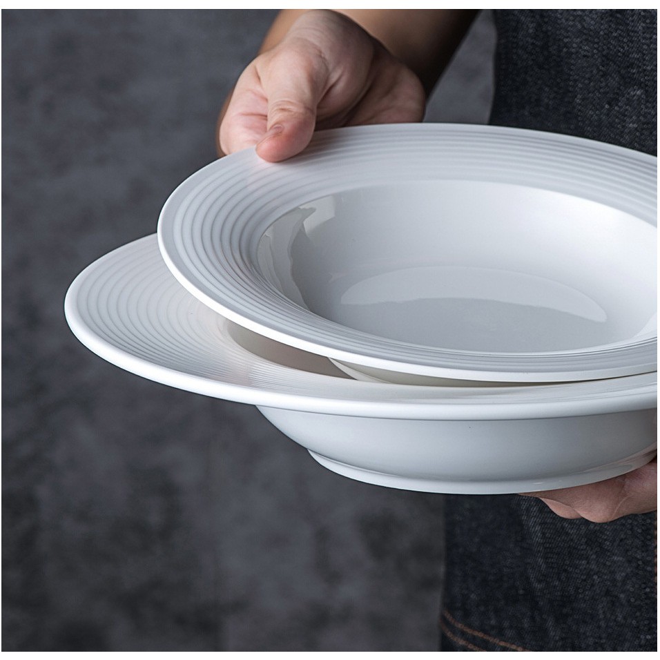 Nhà cửa & Đời sống > Bộ đồ bàn ăn > Dĩa || Đĩa trắng trũng cao cấp ăn mỳ Ý họa tiết sọc vằn phong cách ItalyCòn hàng
