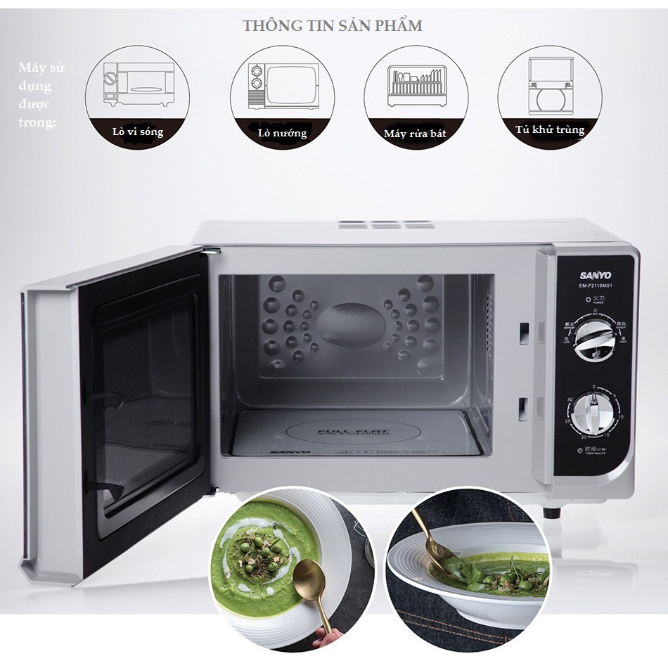 Đĩa có thể dùng trong lò nướng, lò vi sóng, máy rửa bát, tủ khử trùng nhiệt độ dao động -20*C -> 180*C