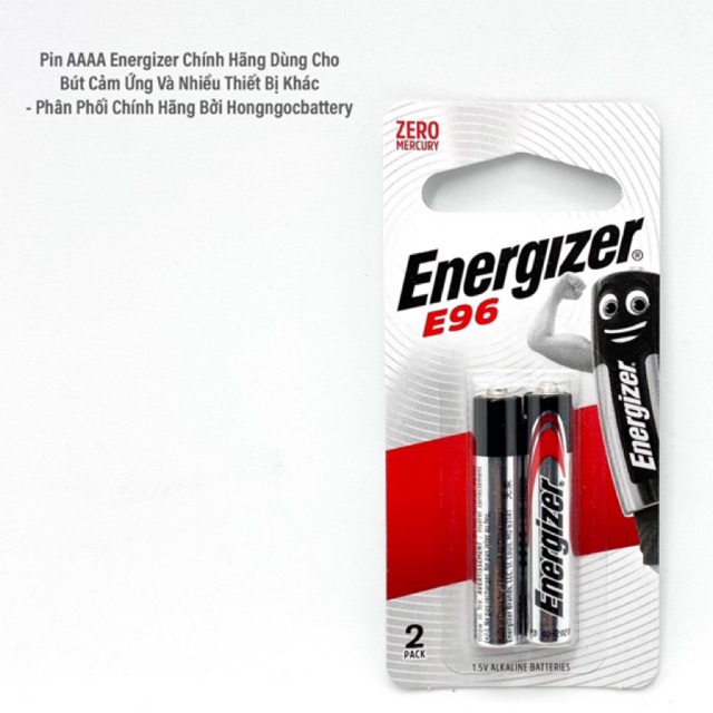 Pin Energizer AAAA alkaline 1.5V Pin Energizer AAAA được làm từ chất liệu Alkaline (kiềm ). Là hãng pin của Mỹ, được xếp vào dòng pin chất lượng số 1 trên thế giới hiện nay. Nói đến pin Energizer gần như những người dùng ai cũng biêt, là một trong những hãng pin đầu tiên của nước ngoài vào thị trường việt nam. Hiện nay hầu hết các siêu thị đều đang bán pin Energizer.Pin Energizer AAAA Với khả năng tích điện lớn, dòng điện ổn định, thời gian lưu trư điện lên đến 10 năm đang dần thay thế các dòng pin chất liệu cacbon với công xuất nhỏ.