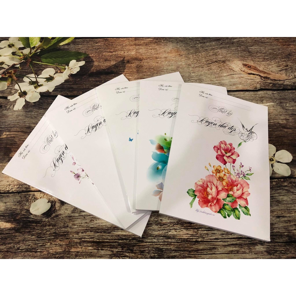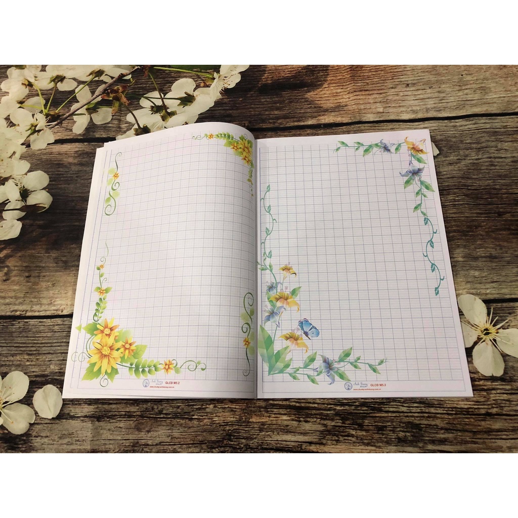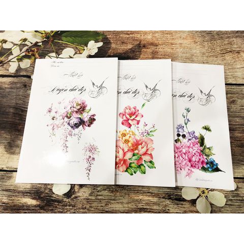 Sổ có 2 mẫu: mẫu giấy hoa gồm 1 mặt đứng, 1 mặt nghiêng và mẫu giấy hoa 2 mặt đứng. Khách hàng cần lựa chọn vui lòng ghi chú cho shop.