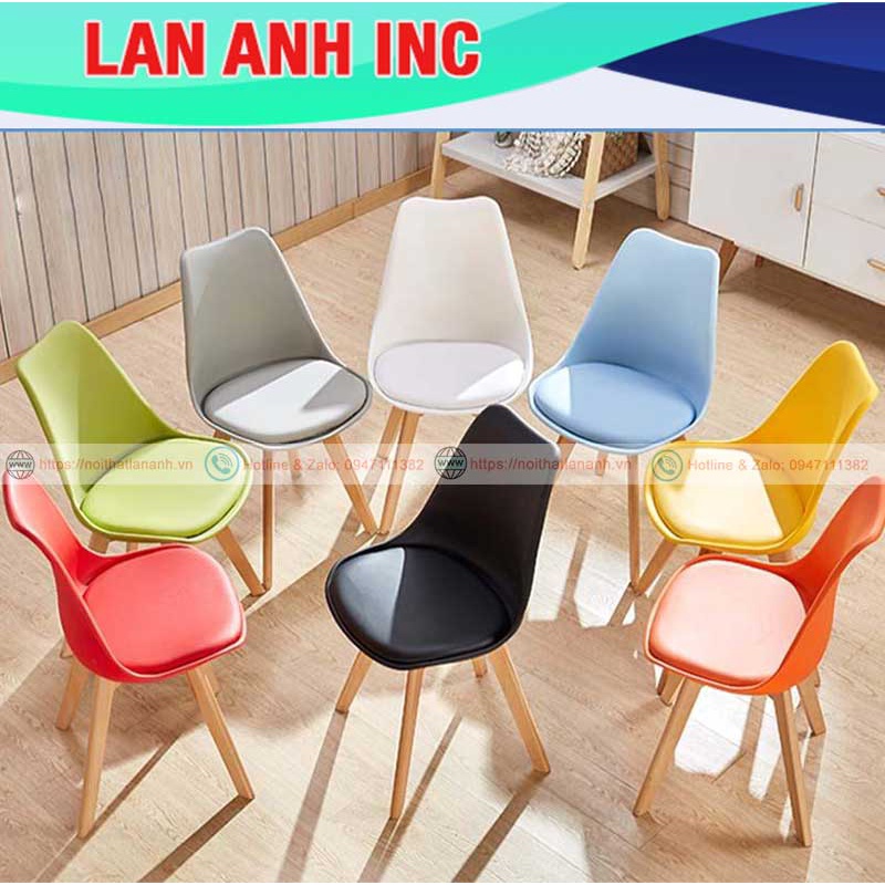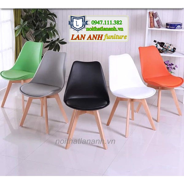 Giới thiệu Ghế nhựa chân gỗ văn phòng cafe tựa lưng cao nệm simili giá rẻ eames LAGN33-1