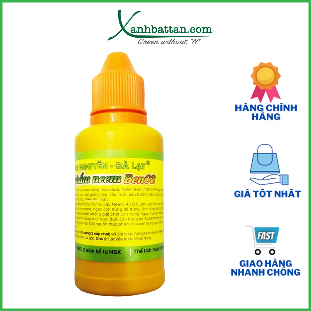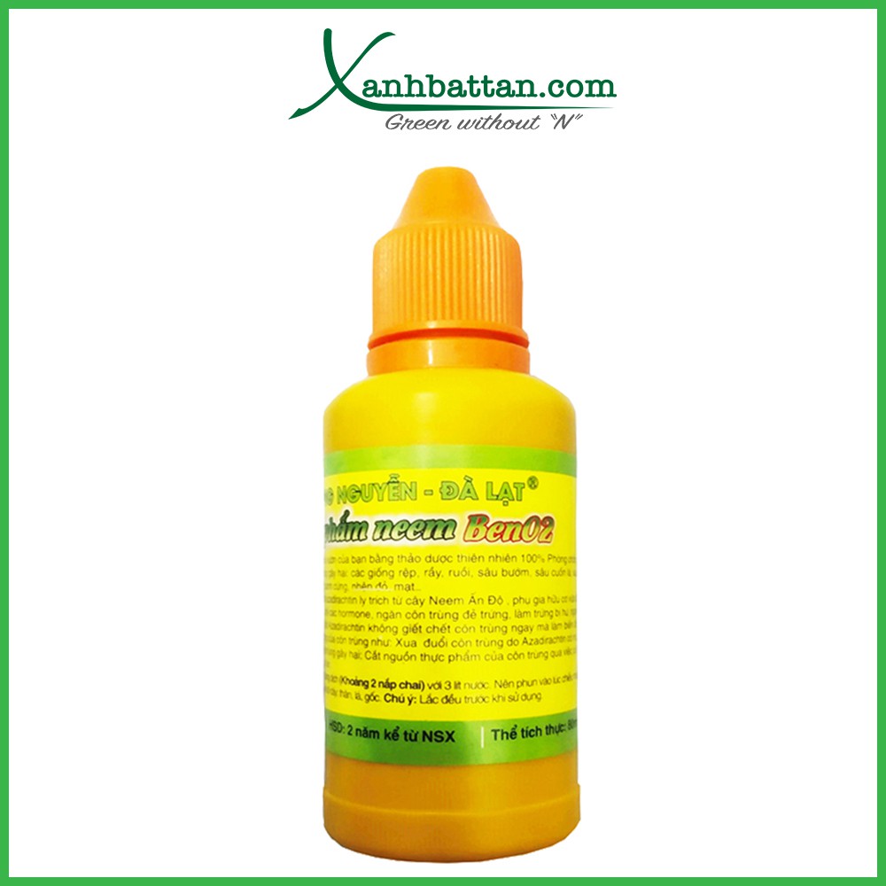 Tinh Dầu Neem (Neem Oil) Phòng Trừ Côn Trùng Và Sâu BệnhTinh dầu Neem hay còn gọi là neem oil là dòng chế phẩm trừ sâu dạng sinh học. Sản phẩm của Hùng Nguyễn - Đà Lạt được trích lý từ cây neem ấn độ với thành phần thiên nhiên 100%. Sản phẩm được sử dụng cho hầu hết các loại cây trồng, đặc biệt là phong lan và hoa hồng.
