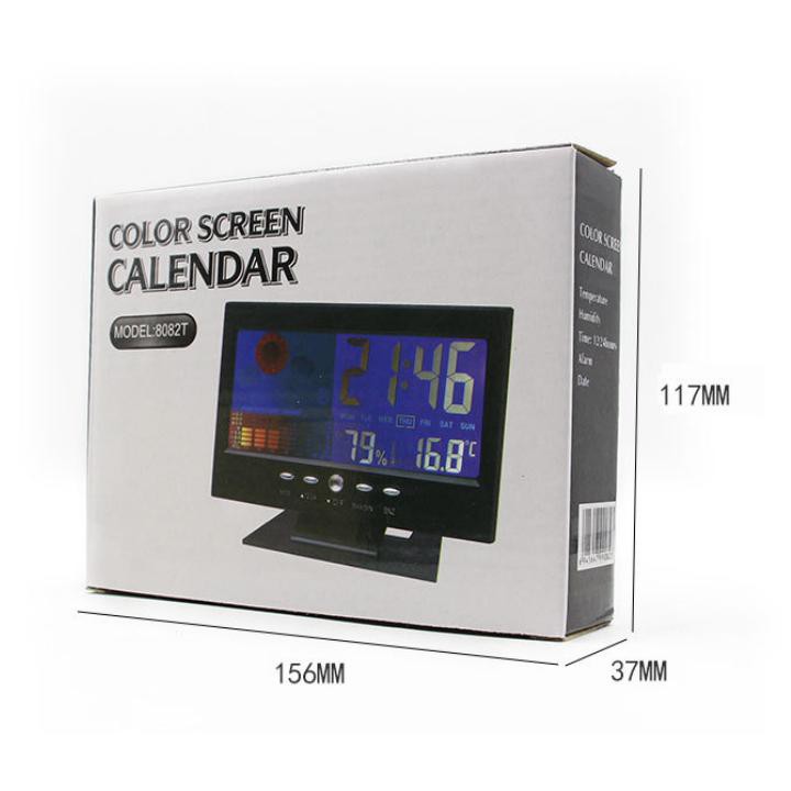 Đồng Hồ 8082T Để Bàn LED LCD Báo Thức Thời Tiết Cảm Biến Âm Thanh Cao Cấp - MÀU ĐEN