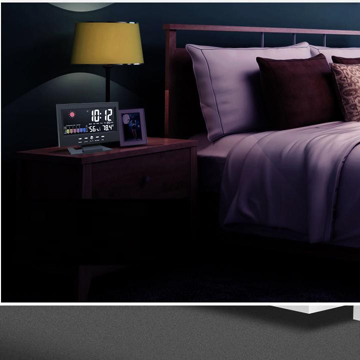 MÔ TẢ SẢN PHẨM:Đồng hồ báo thức LCD đa chức năng với màn hình hiển thị thời gian / ngày / tuần / nhiệt độ / độ ẩm / thời tiết, hoàn toàn phù hợp cho sử dụng tại nhà và văn phòng. Và đồng hồ có đèn nền trên màn hình, bạn có thể dễ dàng đọc giá trị vào ban đêm.