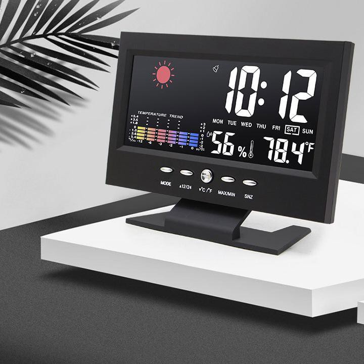 Nhà cửa & Đời sống > Trang trí nhà cửa > Đồng hồ || Đồng Hồ 8082T Để Bàn LED LCD Báo Thức Thời Tiết Cảm Biến Âm Thanh Cao Cấp - MÀU ĐENCòn hàng